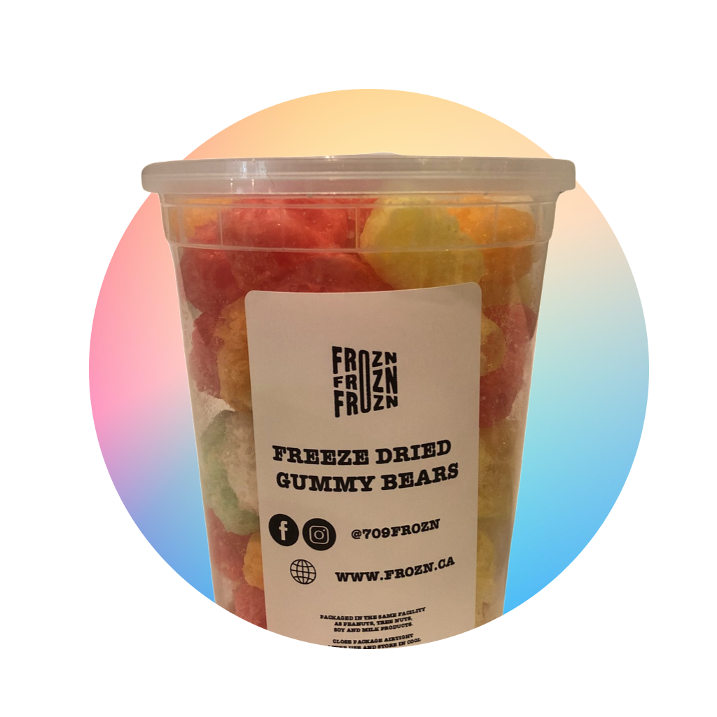 Freeze dried gummy bears turn into crispy clouds of fruity fun.