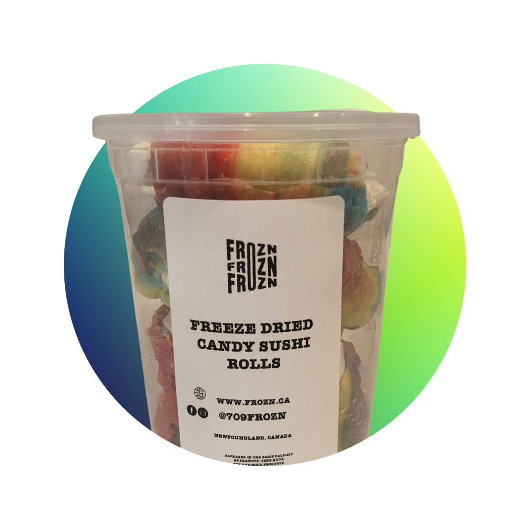 There’s nothing fishy about our freeze dried sushi rolls! Made from marshmallows wrapped in fruit roll ups!